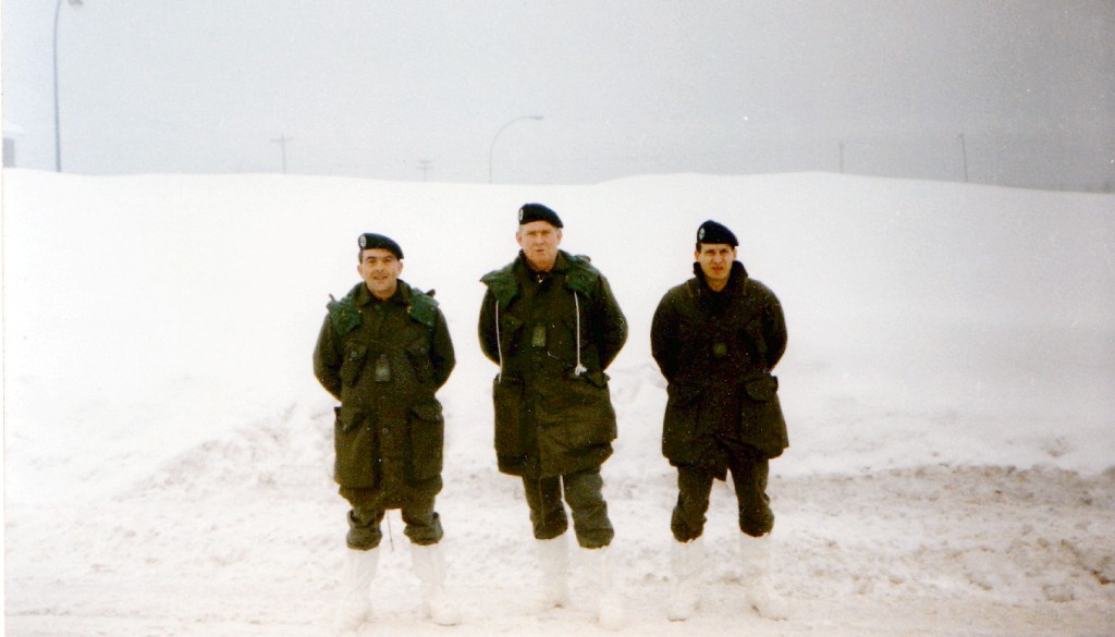 CLIQUER SUR LES PHOTOS POUR LES AGRANDIR SEJOUR AU CANADA DANS LE CADRE DES ECHANGES MICHAUD - ROUX - JANIN - EQUIPES DE TENUES CANADIENNES TEMPERATURE - 28° CHAR CANADIEN CAMOUFLE DANS LA NEIGE PRETS POUR LE RAID EN MOTO NEIGE VILLAGE CANADIEN ET LE MUR DE NEIGE Retour à l'album photos