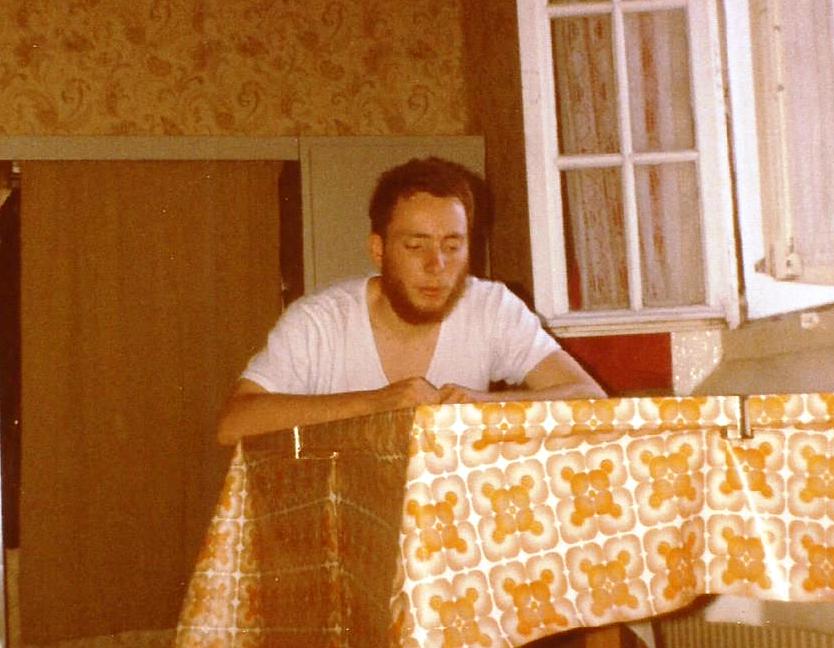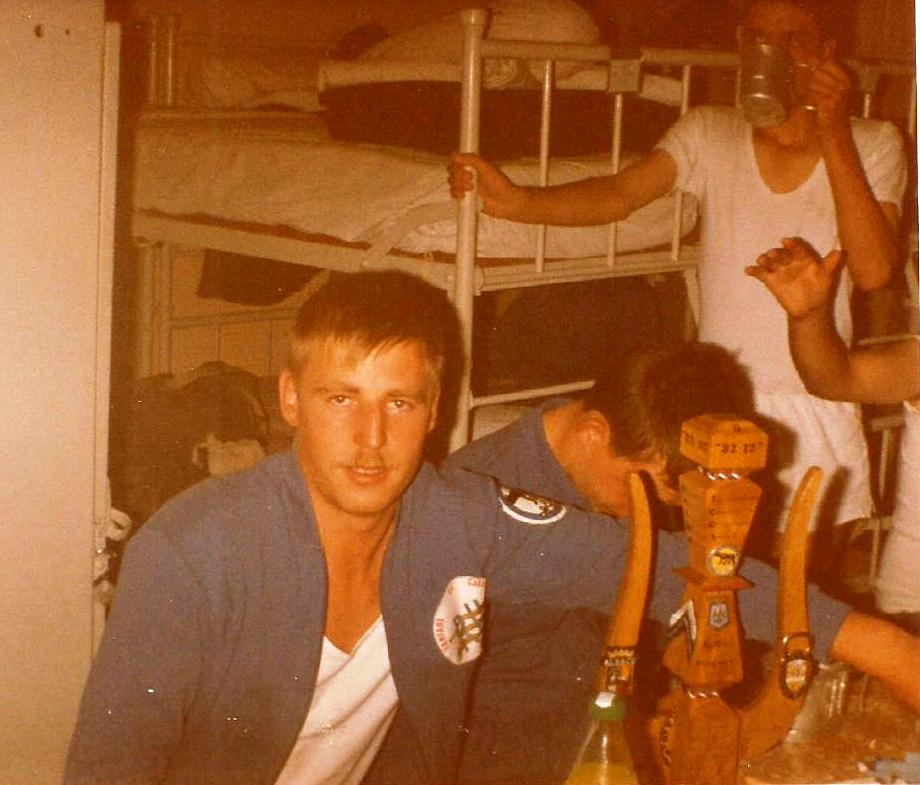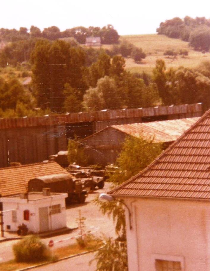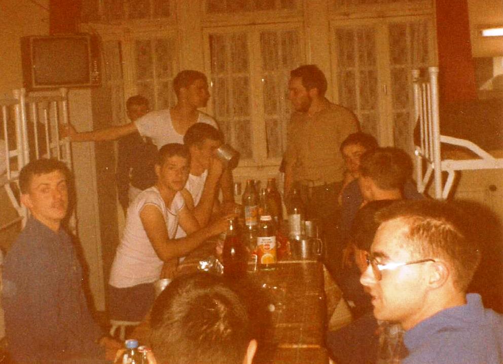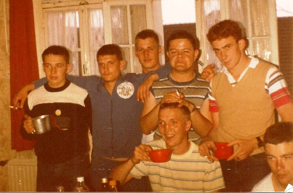 Musiciens derrière le local de répétition avec des libérables en 1983
