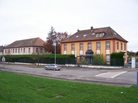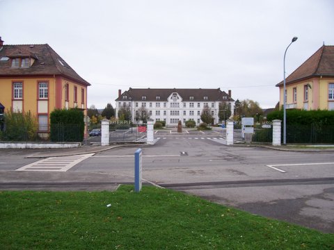 à gauche l'infirmerie, au fond l'ECS à droite Poste de police
