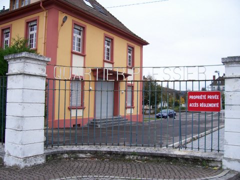 L'entrée du quartier avec à gauche le service général