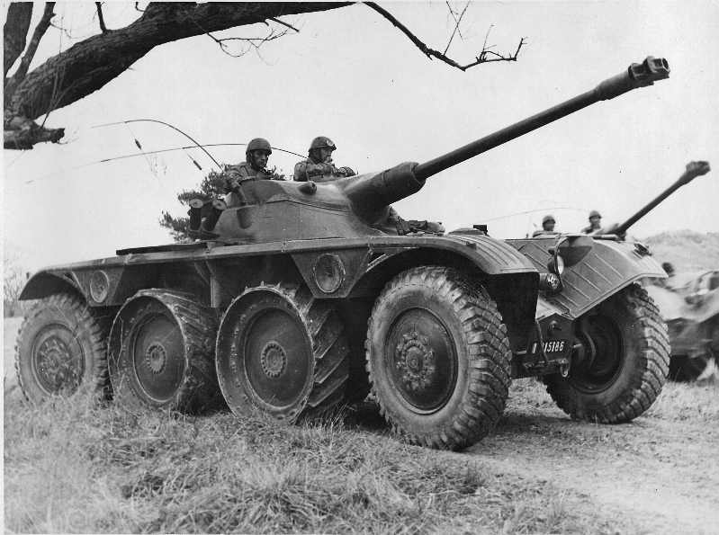 A sa recréation, en décembre 1951, le 8° régiment de Hussards est alors équipé de matériel américain, AM M8 et AM M20 et de jeep US .